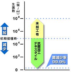 大腸菌(O-157を含む)・黄色ブドウ球菌・肺炎桿菌・枯草菌・緑膿菌・白せん菌(水虫菌)・カンジタ菌・青カビ・黒カビ・サルモネラ菌などの繊維上での増殖に対し、優れた抑制効果を備えています。