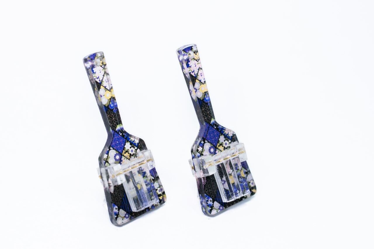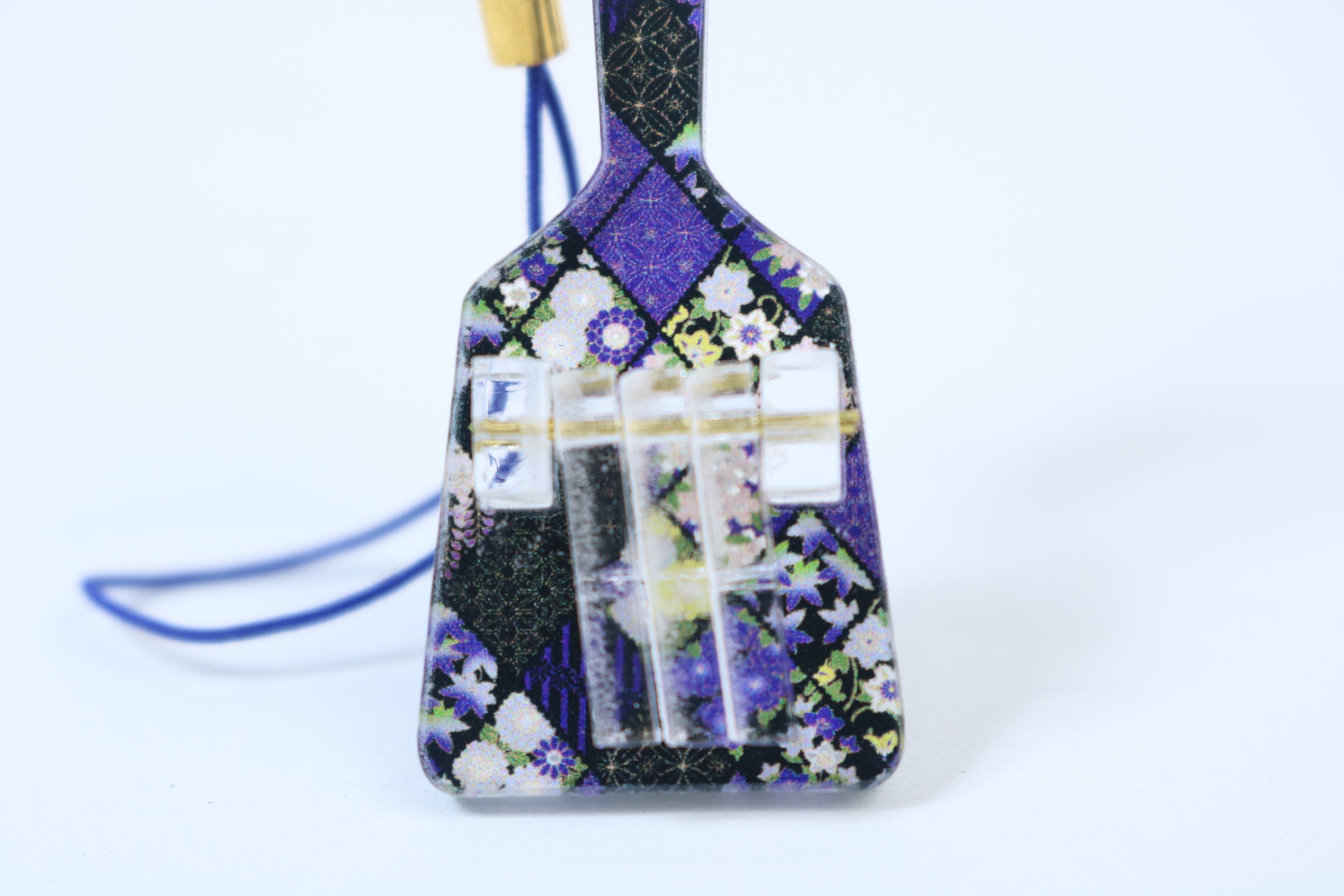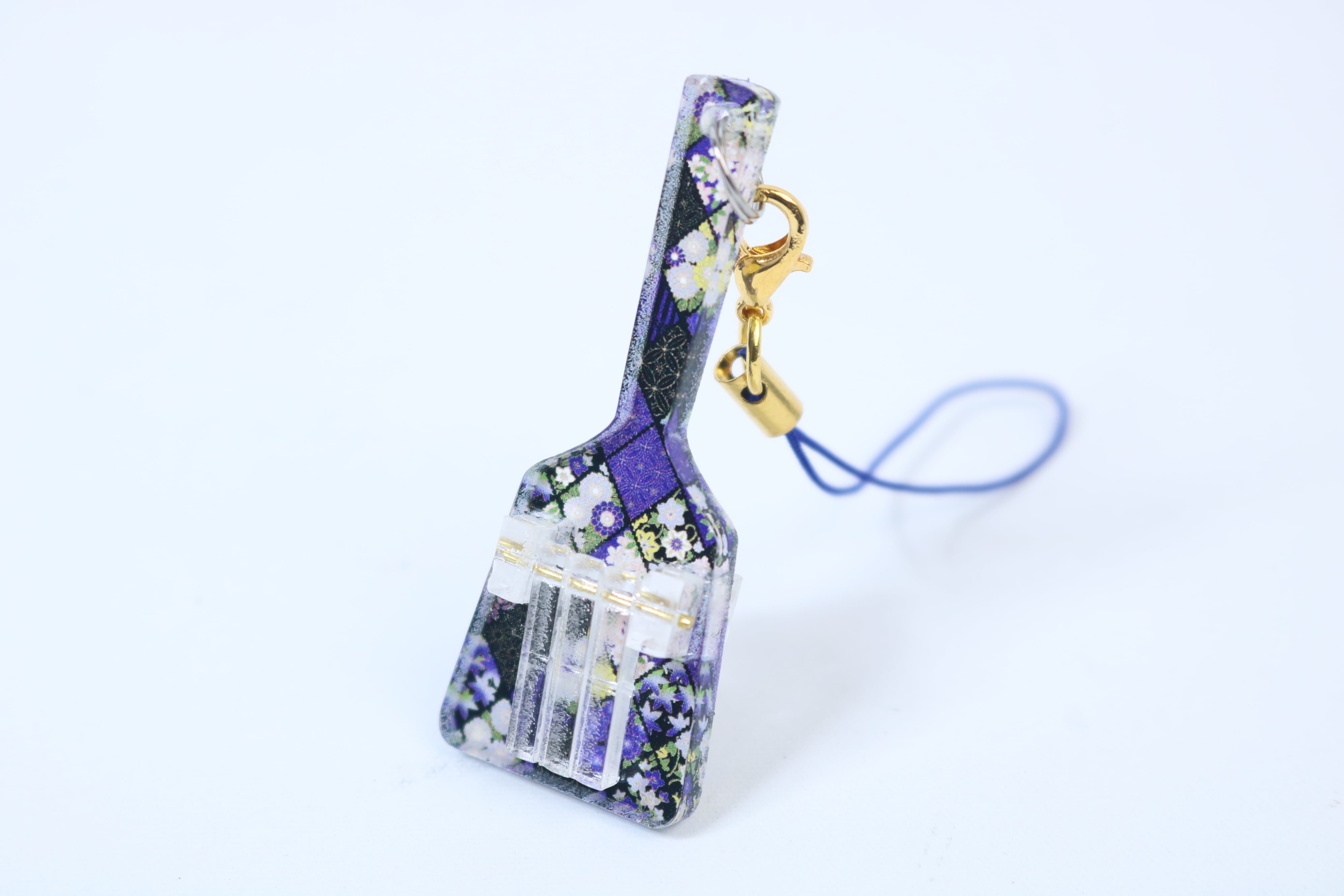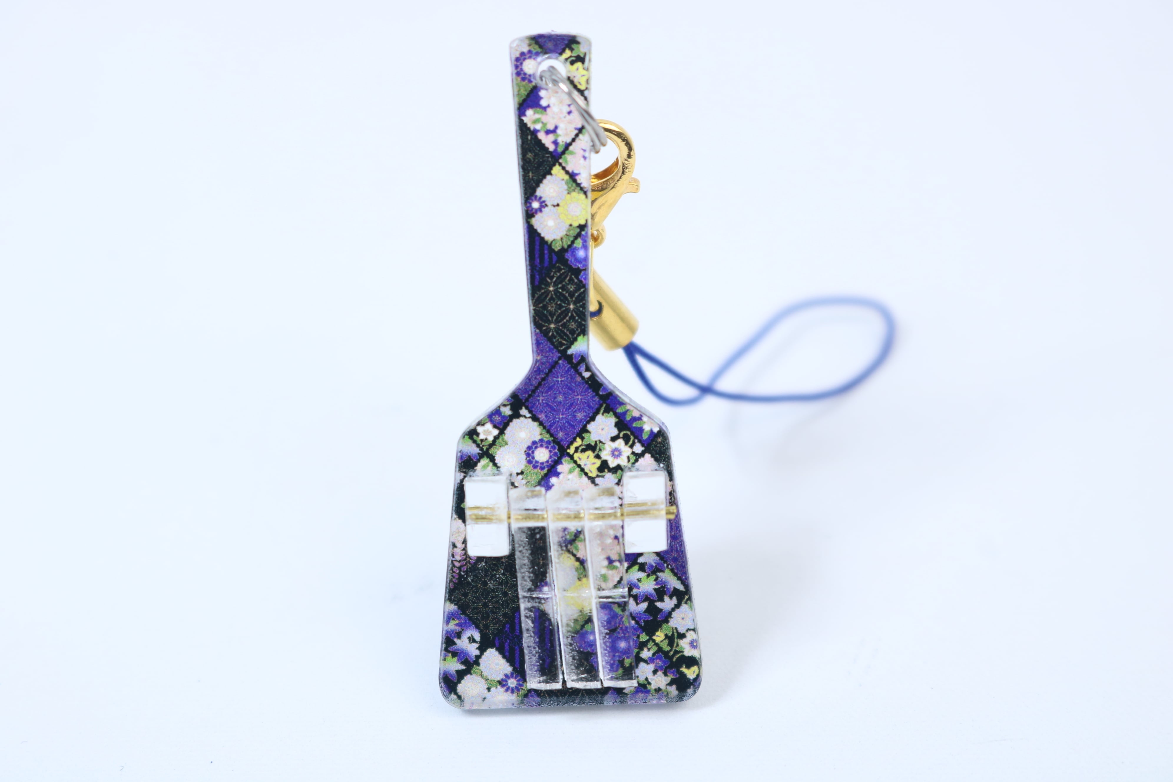 鮮やかなデザインと可愛らしい甘い雰囲気を演出してくれるアクリル製のデザインミニ鳴子キーホルダーです。落ち着いたカラーリングと細かな模様が特徴で、バッグや鍵などに取り付けるとオシャレ度アップ!さりげないアクセントとなります。