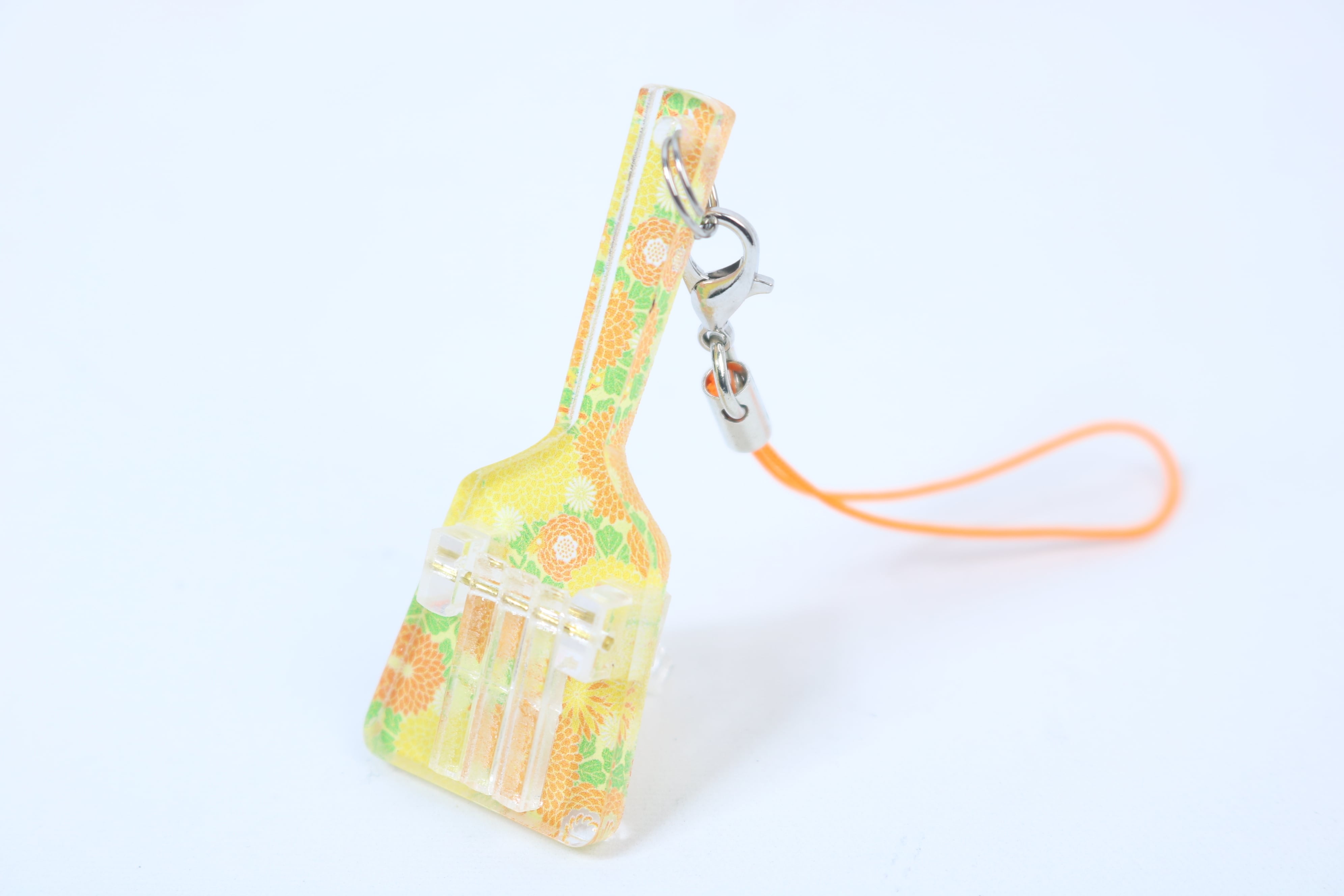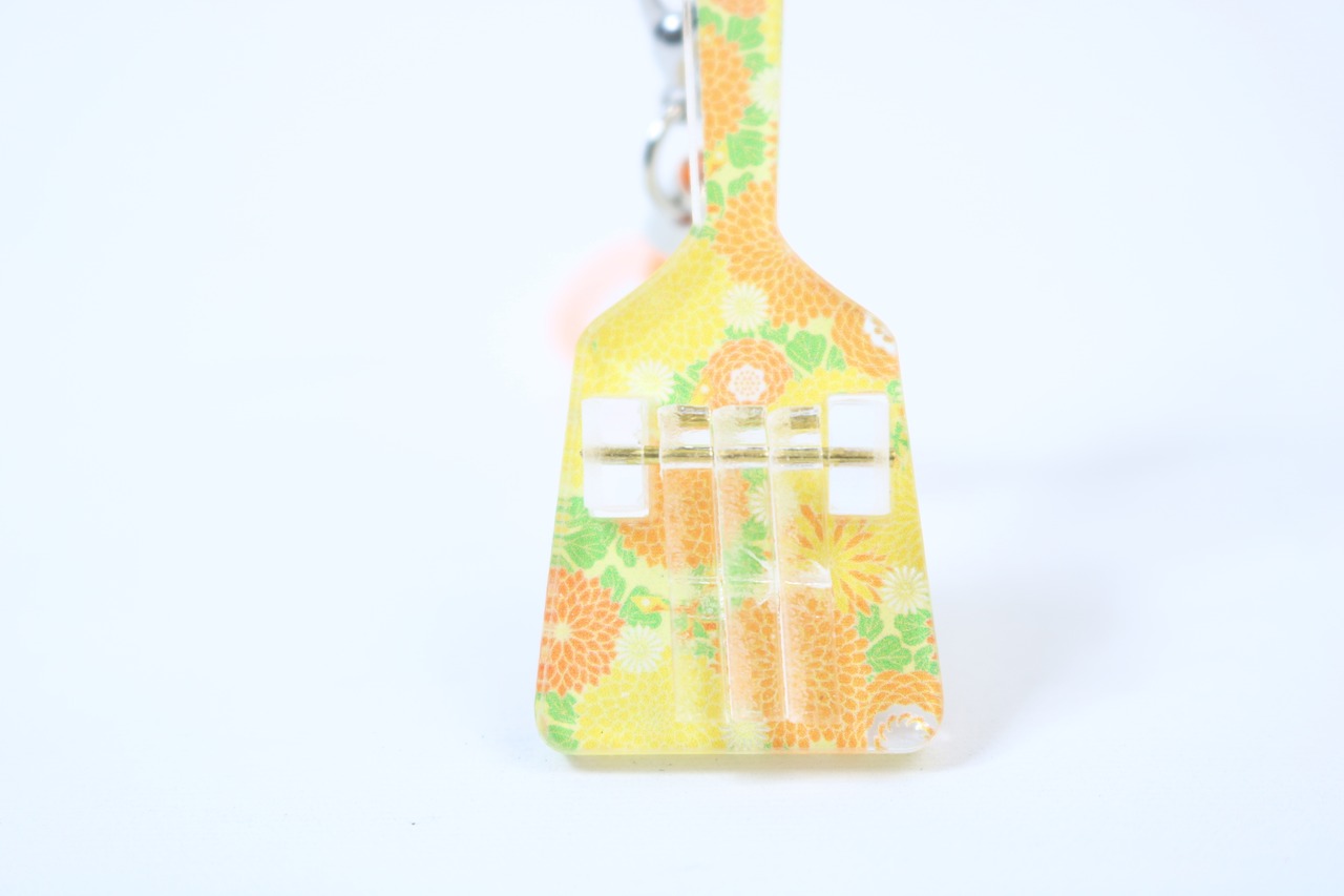 鮮やかなデザインと可愛らしい甘い雰囲気を演出してくれるアクリル製のデザインミニ鳴子キーホルダーです。落ち着いたカラーリングと細かな模様が特徴で、バッグや鍵などに取り付けるとオシャレ度アップ!さりげないアクセントとなります。